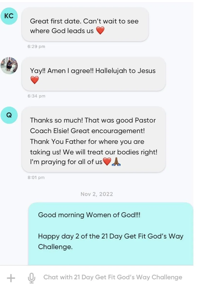Having a fun, encouraging, & Christ based group of women that will help keep you accountable as we all go on this fitness journey together.